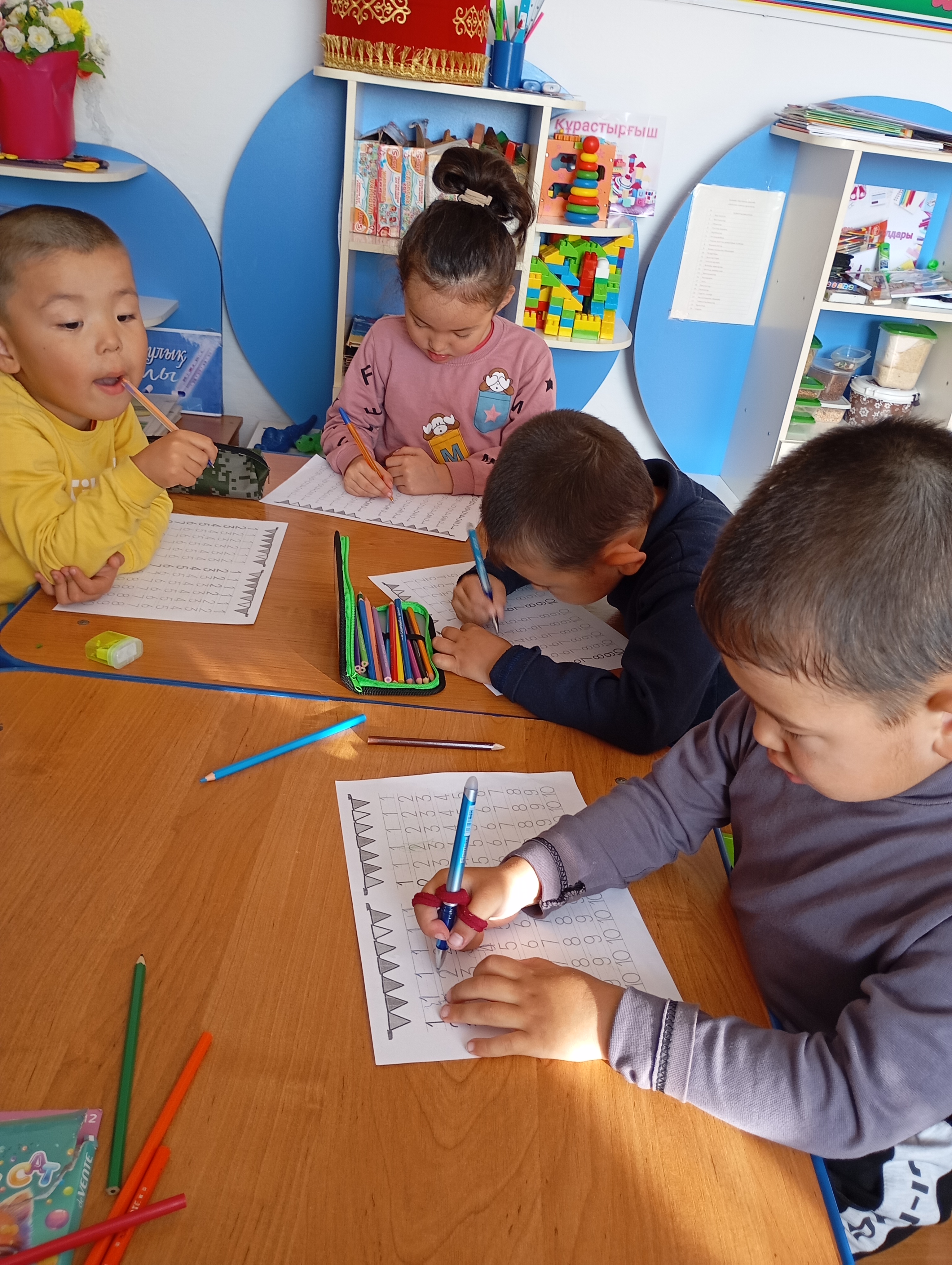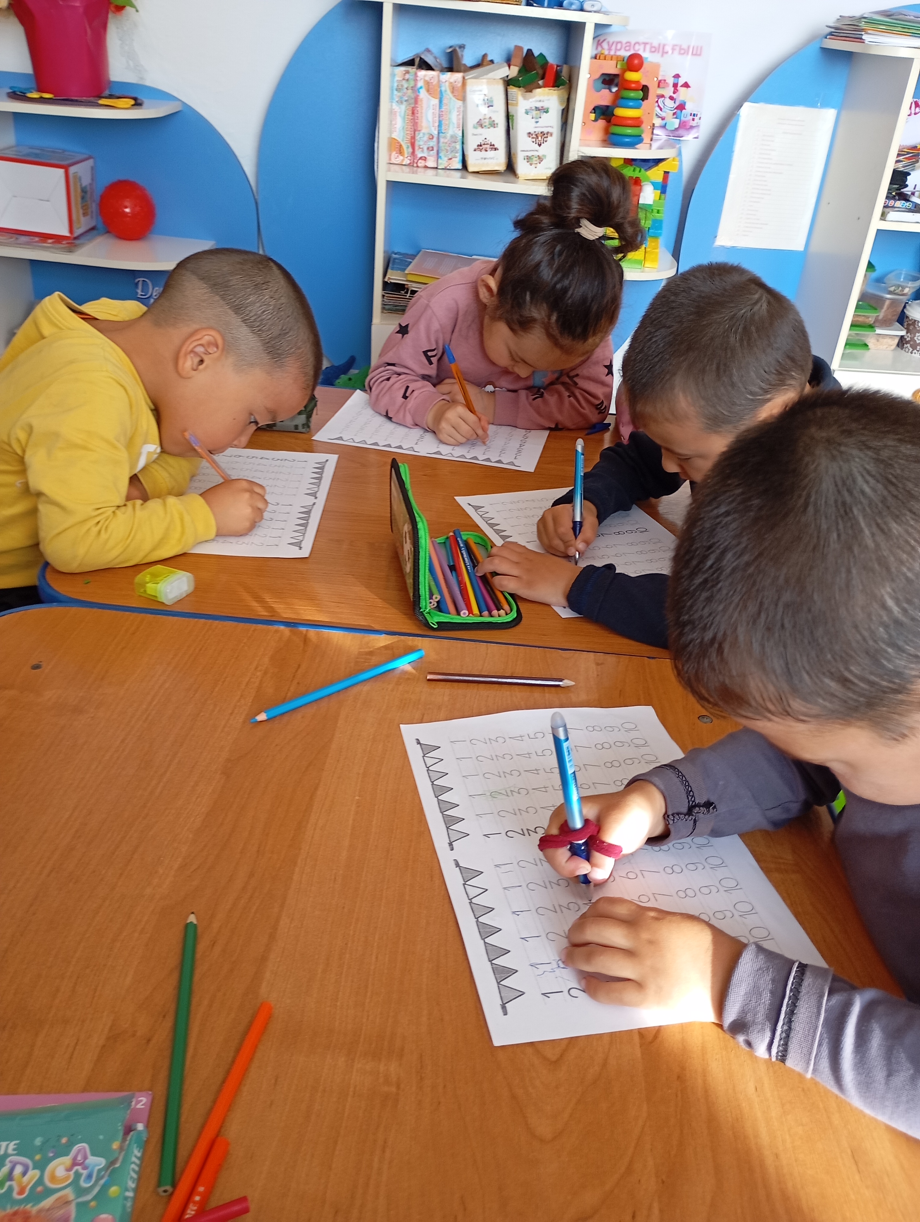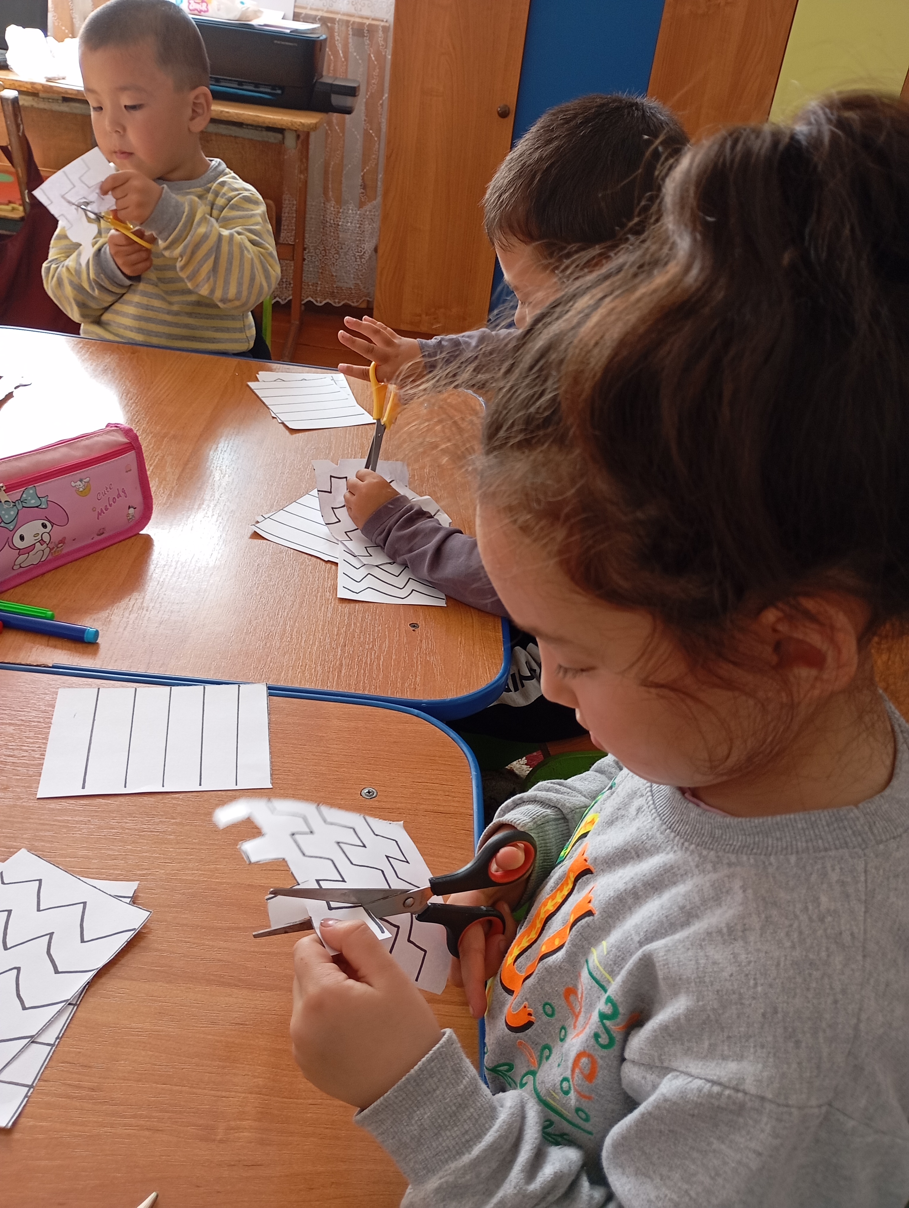 "Сулыкөл бастауыш мектебі" КММ жаныңдағы шағын орталық тәрбиенушілері қайшы мен қаламдармен қолданып, ұсақ қол маторикасын ұлғайтуға жұмыстары істелінді.
